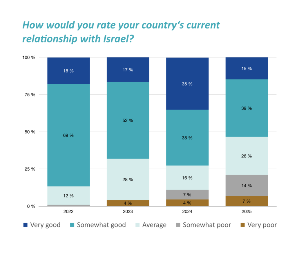 Der er sket en stigning i dem, der mener at deres lands Israel-forhold er dårligt eller meget dårligt.
